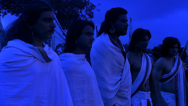 Юдиштира возмущен вероломством Кауравов. Кришна объясняет, что противники рассчитывают с помощью коварства победить, но у них ничего не выйдет. Пандавы принимают бой. Начинается ночное сражение.